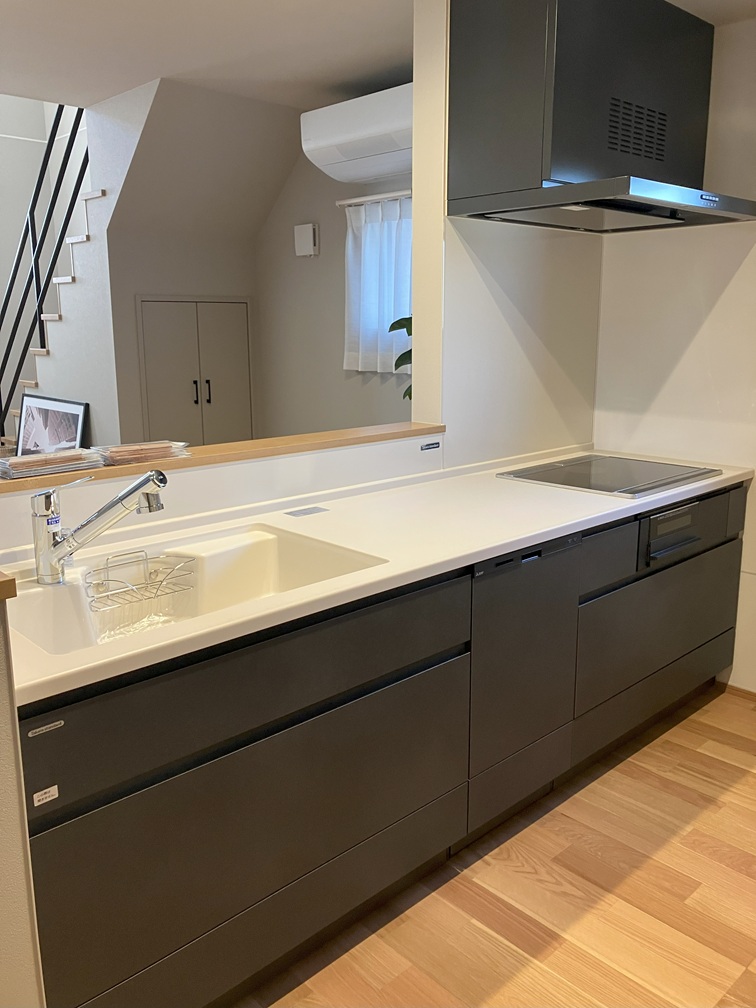 お子様も配膳のお手伝いがしやすい対面キッチン♪家事をしている時も、家族とのコミュニケーションがとりやすいですね♪