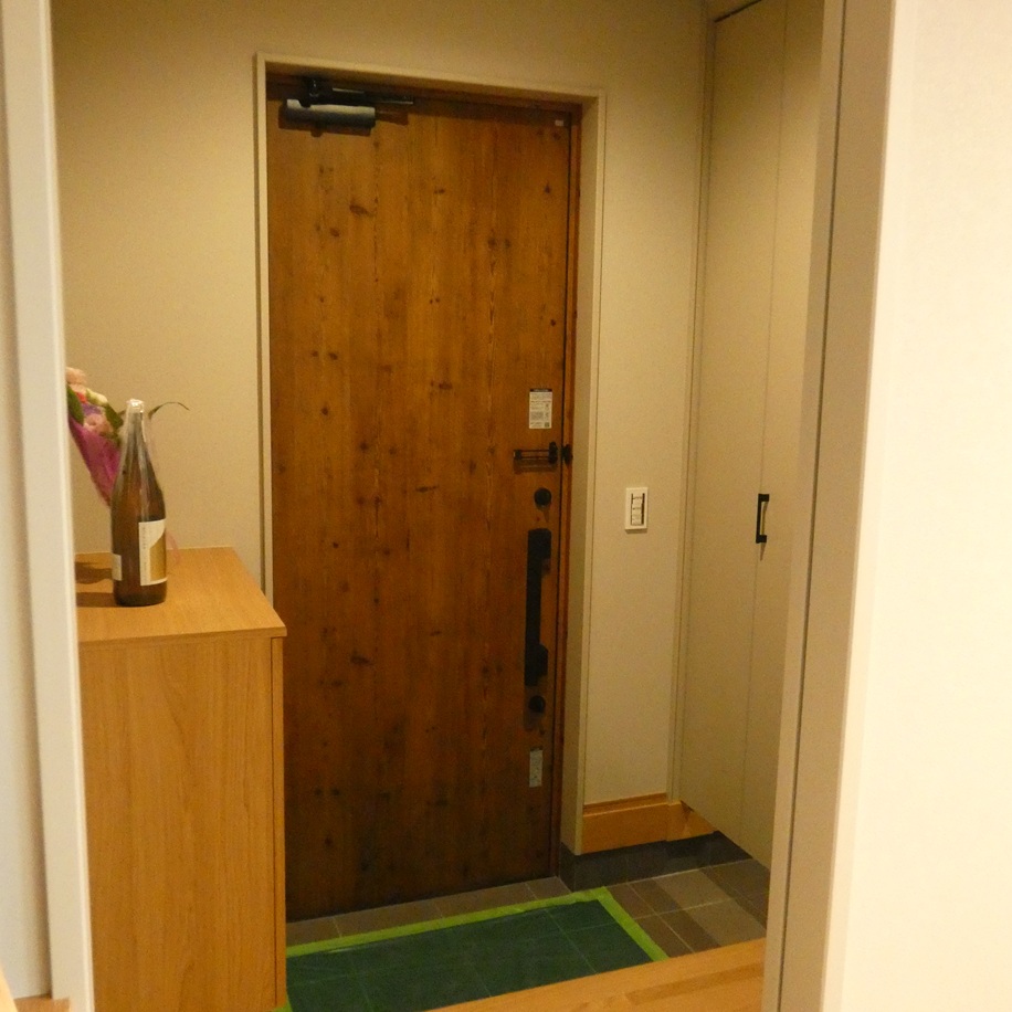 あたたかみのある玄関です。入って左側には土間収納があります。